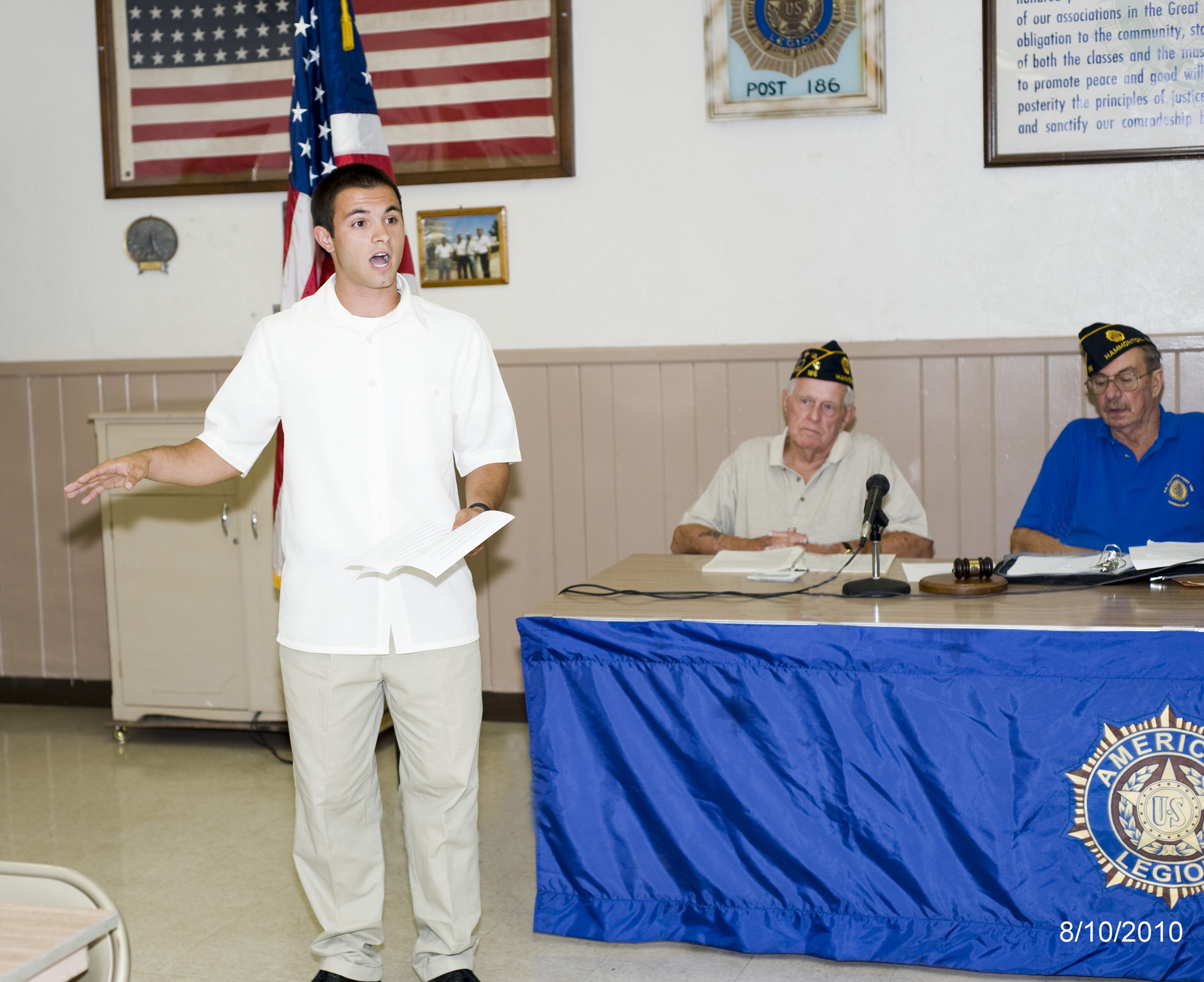 Post 186 heard from its delegate to the most recent Boys State, Daniel Peruta. Daniel was accompanied by his father, Frank, a former Marine Corps Captain. Daniel is a senior at Hammonton High School.